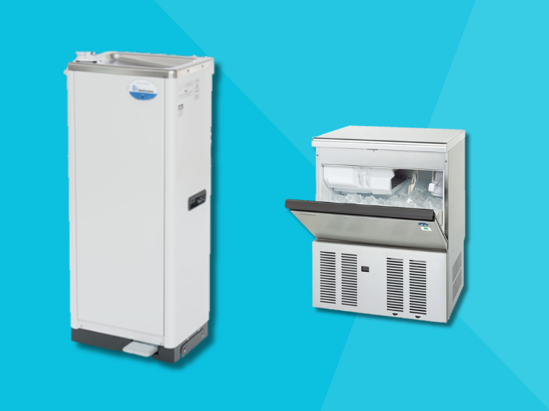 熱中症対策の必需品であるウォータークーラーと製氷機も取り揃えております。ノンフロン仕様導入で環境対策にも貢献。